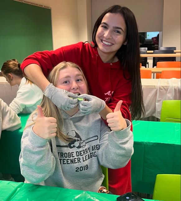 Through our partnership with the Neighborhood Resilience Project (NRP) in the Hill District, our club members have made a meaningful impact on the local community. Delta Delta Sigma established an oral hygiene outreach table to educate patients at NRP on the importance of proper oral care, while also distributing hygiene kits assembled during our club meetings.