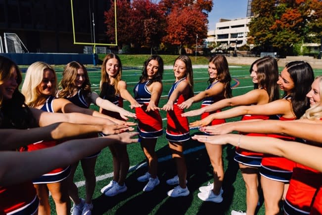 The Dukettes are very dedicated to supporting our Duquesne athletic teams and community. The Dukettes cheer on the Duquesne University football team as well as the Duquesne men’s and women's basketball teams. The Dukettes engage and entertain the crowd to help boost school spirit. The Dukettes also hold a clinic to show what the team and life at Duquesne is like each semester for current and prospective Duquesne students. They also show their Duquesne spirit year around by participating in various campus events like the Homecoming parade and Duquesne’s Night of Lights!